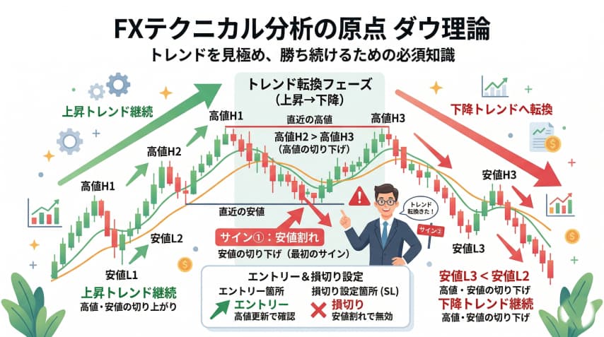 FXテクニカル分析「ダウ理論」を徹底解説!トレンドやエントリー判断まで初心者向けガイド