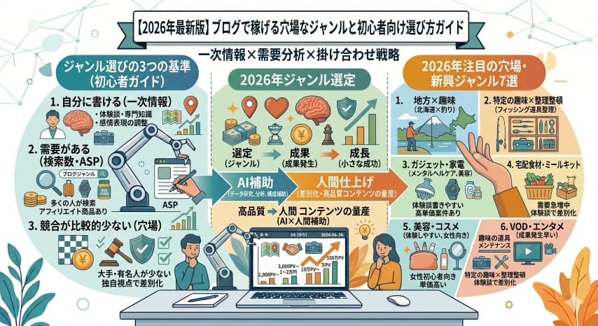 【2026年最新版】ブログで稼げる穴場なジャンルと初心者向け選び方ガイド