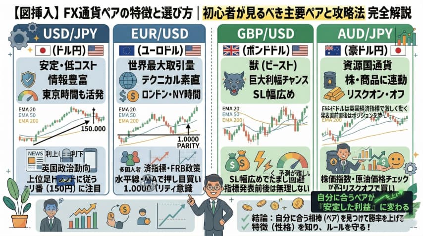 FXトレードの通貨ペアの特徴と選び方!初心者が見るべき主要通貨ペアと攻略法