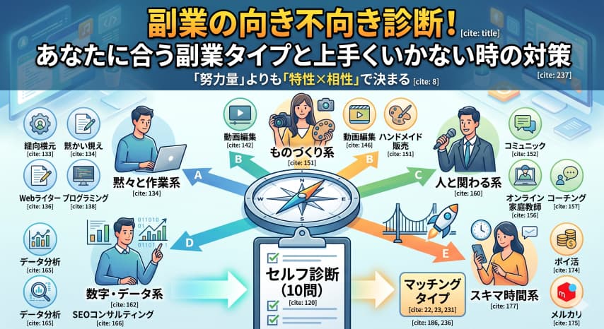副業の向き不向き診断!あなたに合う副業タイプと上手くいかない時の対策