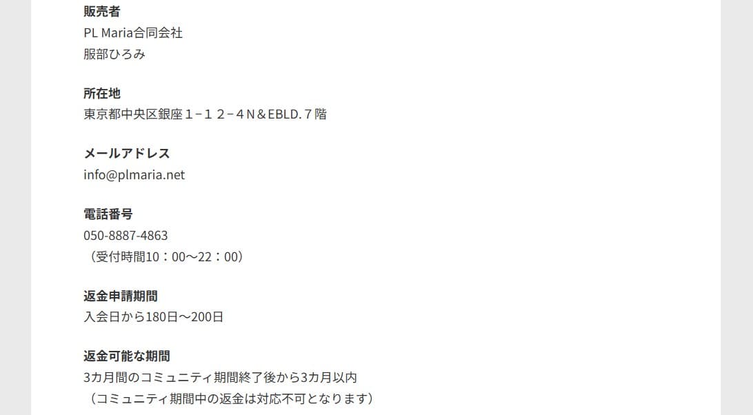 | 販売会社 | PL Maria合同会社 |