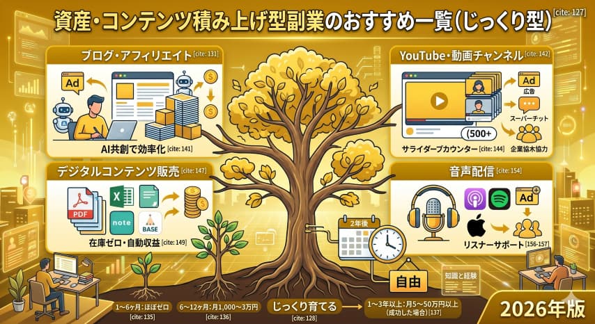 どの副業を選んでも、AIを組み合わせることで効率が上がる。2026年以降は「AI×〇〇」という視点で副業を選ぶのが正解に近い。