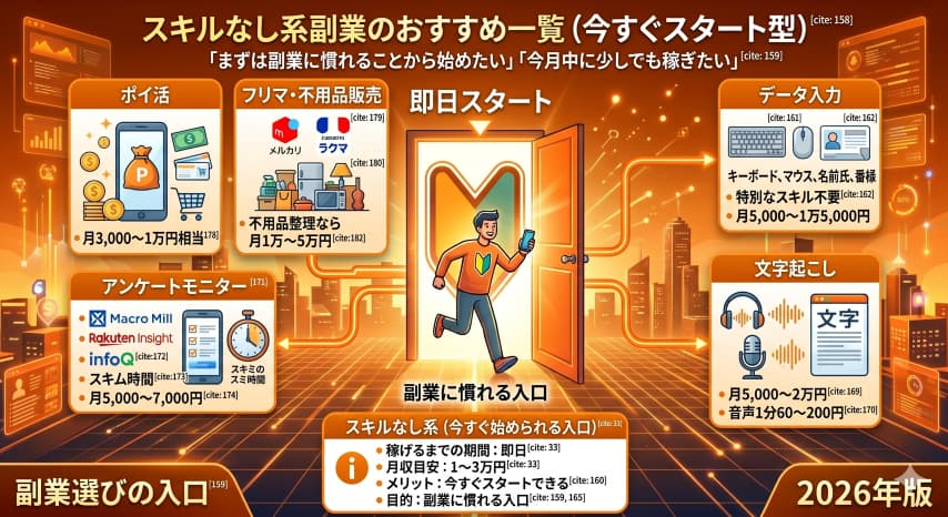 | スキルなし系 | 今すぐ始められる入口 | 即日 | 1〜3万円 |